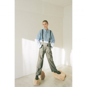 デザイナーは秋元舞子。袖を通して「何だか違うかも」と抜け感のあるニュアンスを感じて欲しい。Street Clean Relaxをテーマに、ふと手に取ってしまうような服を目指して作られている。一見何でもないような服が引き出す女性らしさ、ニュアンスを大事にしたデザインを心掛けている。