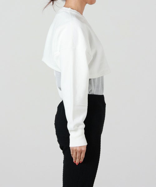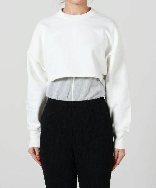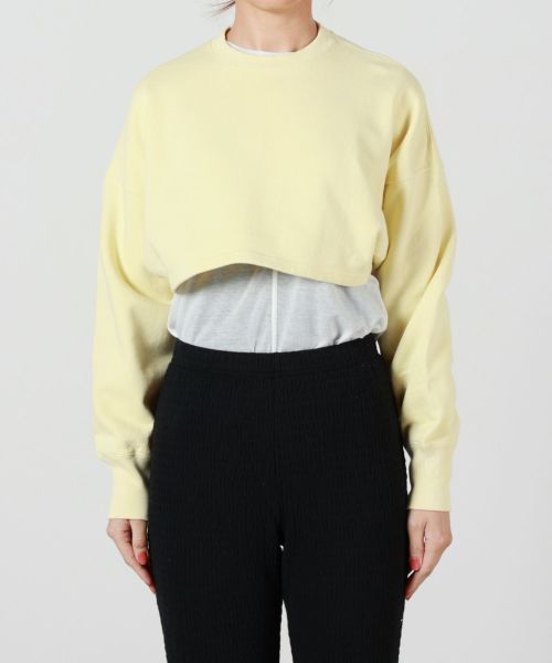 【デザイン】PHEENY(フィーニー)のスウェット。 スーパーショート丈のスウェットです。 レイヤードアイテムとして、幅広いシーズンに活躍します。