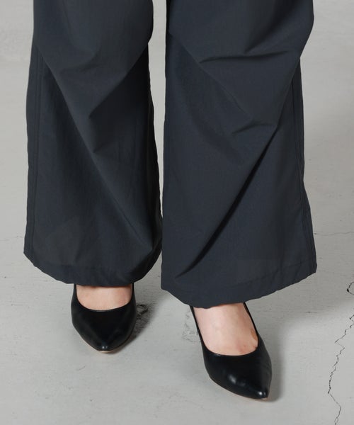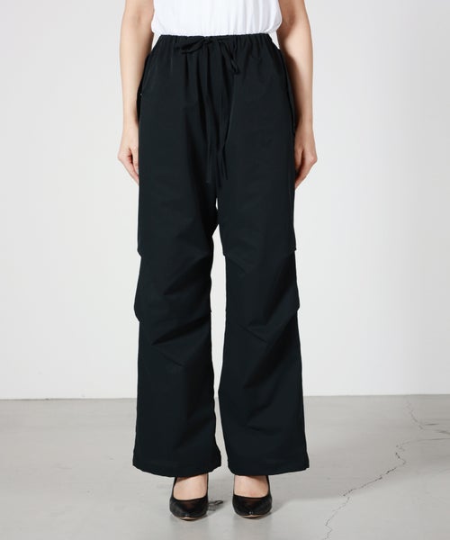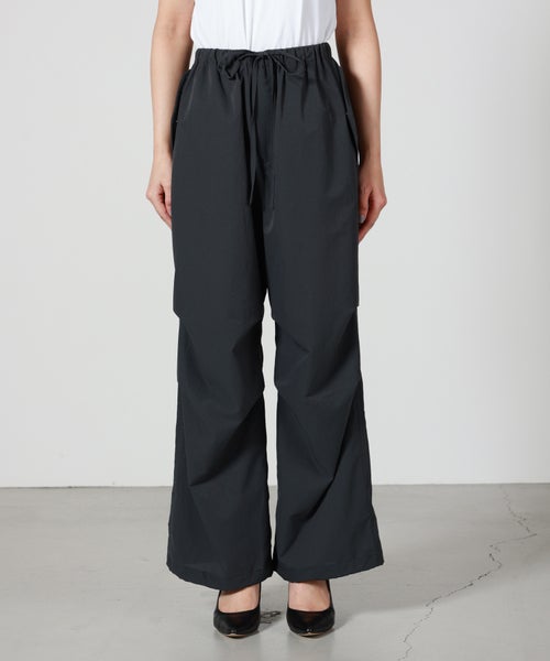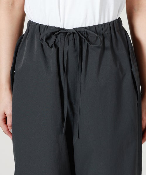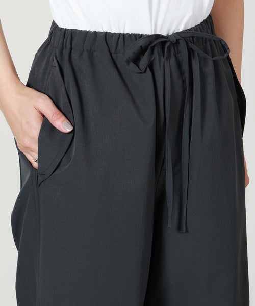 【デザイン】PHEENY(フィーニー)のパンツ。スノーパンツをベースにしたリラックス感のあるワイドシルエットが特徴で、程よいボリュームがスタイリングに抜け感をプラスします。ウエストはゴム仕様でストレスフリーな穿き心地を実現し、日常使いからアクティブなシーンまで幅広く対応。ミニマルなデザインながら、さりげない表情のある生地感がアクセントとなり、シンプルなトップスと合わせるだけでこなれた印象に仕上がります。裾のシルエット調整やトップスインなどでバランスを変えれば、幅広いコーディネートが楽しめる一本です。