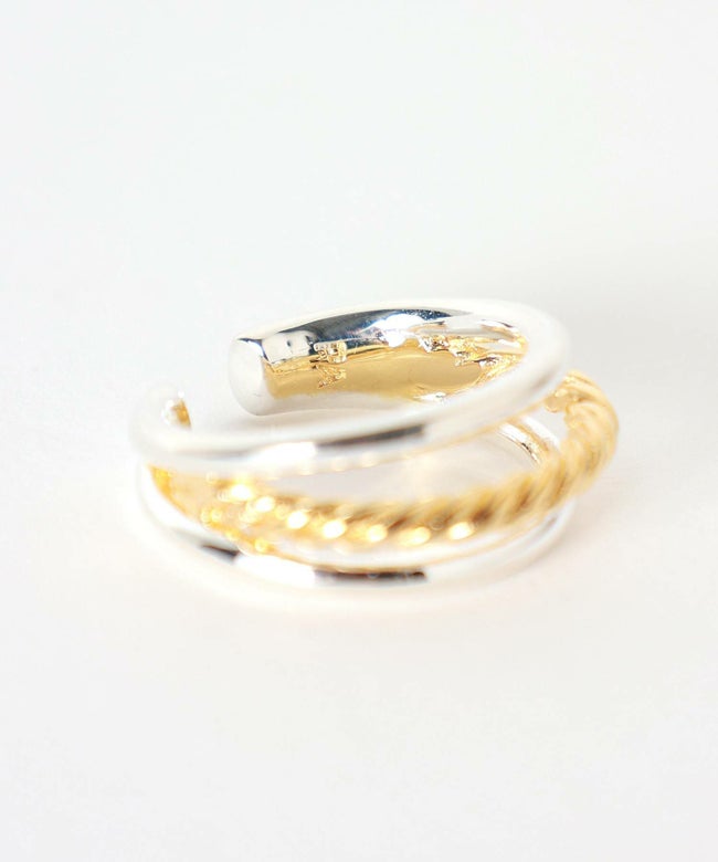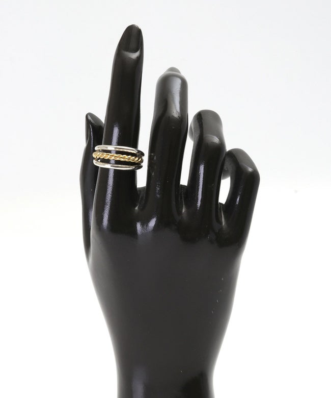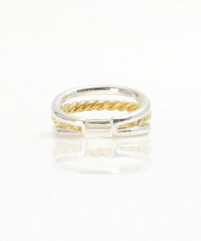 【デザイン】Philippe Audibert(フィリップ オーディベール)のリング。華奢なゴールドのロープモチーフがポイントのバイカラーデザイン。手元に馴染みやすい細めのラインで、手元に上品な華やかさをプラスしてくれます。