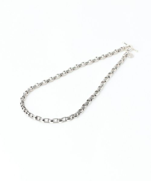 【デザイン】 Philippe Audibert(フィリップ オーディベール)のネックレス。2種類のデザインチェーンをつなぎあわせたアイテム。ボリューム感があり、スタイリングに程よくアクセントをプラスしてくれます。