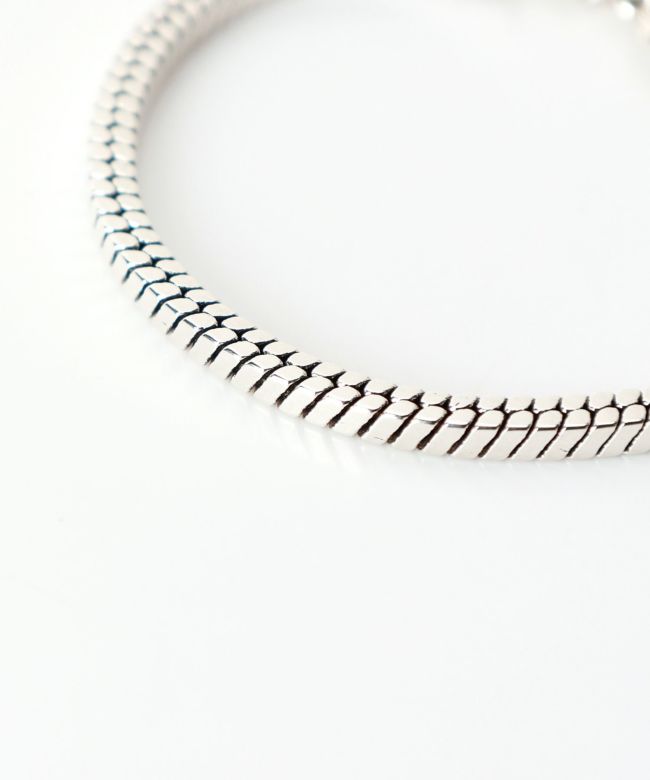 【デザイン】Philippe Audibert(フィリップ オーディベール)のスネークチェーンのブレスレット。1本でも重ね着けでも主役級の存在感を放つアイテム。シンプルなデザインでシーンやスタイリングを選ばないので、デイリーユースに大活躍してくれそう。