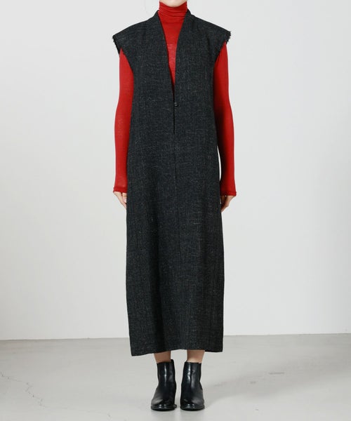 【デザイン】PHOTOCOPIEU(フォトコピュー)のワンピース。ロング丈のヴァルーズです。 袖口を立ち切りにし、あえて肩パッドの断面を見せているデザインが特徴。