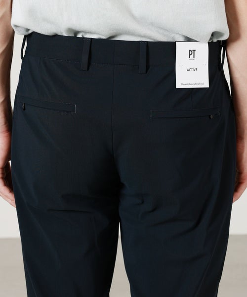 【デザイン】PT TORINO(ピーティトリノ)の新定番シリーズ"Active"の、"EPSILON"。 スポーティかつモードな雰囲気を漂わせる、ノータック仕様のテーパードトラウザーズです。 フロントはノープリーツ仕様とし、股上を浅めに設定しつつ、ウエストやヒップ周りをコンパクトに設定。 腿周りにゆとりを持たせつつ、裾に向かってシャープに絞り込んだシルエットがレッグラインを引き立てます。 ジャケットスタイルのみならず、スポーティーなシーンにも抜群の相性を誇る、万能な1本です。