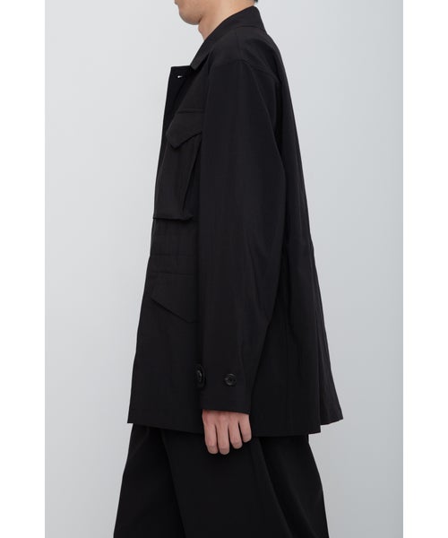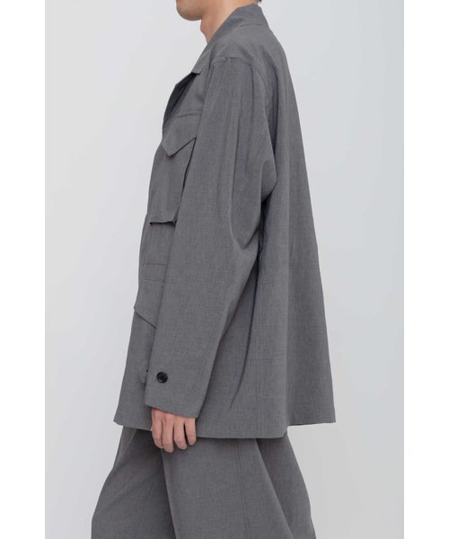 【デザイン】 RAINMAKER(レインメーカー)のジャケット。シンプルでありながらも機能的なデザインが特徴的です。大きめのフラップポケットがフロントに施されており、スタイリッシュな印象を与えつつ、実用性も兼ね備えています。ポケットのディテールがワークジャケットのような印象を与え、カジュアルながらも洗練された雰囲気を演出。着方に変化をつけられるデザインが魅力で、ボトムスと合わせるスタイリング次第で、ラフにもきれいめにも着こなせます。大きめのラペルカラーが、シンプルながらも存在感を放ち、スタイリングにアクセントを加えます。
