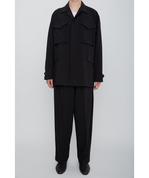 【素材】 適度なハリ感と柔らかさを持つ素材で作られており、リラックスした着心地を提供します。シンプルでありながらも上質感のある仕上がりで、日常使いに最適です。軽やかで通気性の良い素材感が、季節を問わず快適な着用感を実現。手洗い可能でホームケアできるのも嬉しいポイントです。