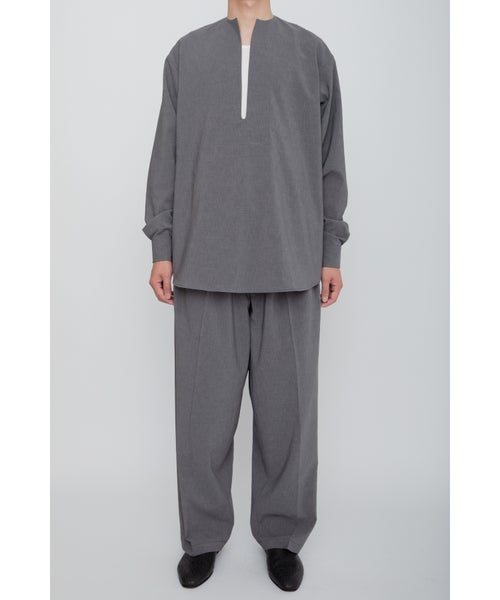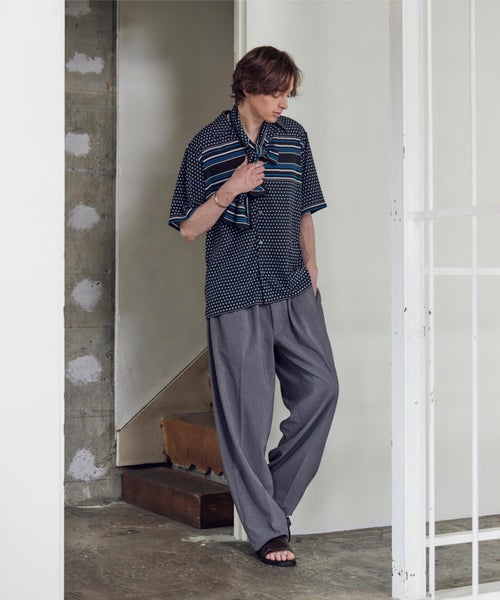 【素材】 ポリエステルを使用し、柔らかな手触りとしなやかな動きが特徴で、優れたドレープ感を持っています。シワになりにくく、メンテナンスが簡単で、日常使いにも最適です。また、軽快で通気性も良く、長時間の着用でも快適さをキープ。ドレープ感が、歩くたびに優雅な印象を与え、デザイン性と素材感が見事に調和した一着です。