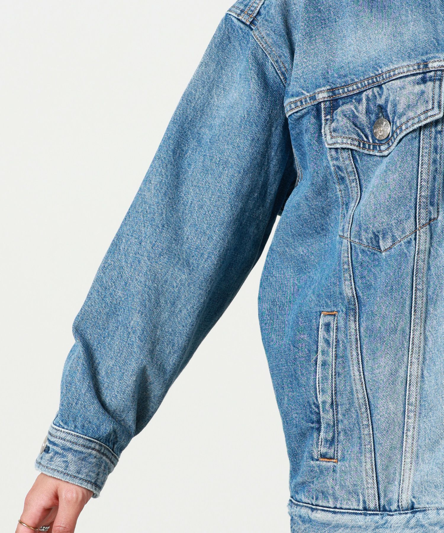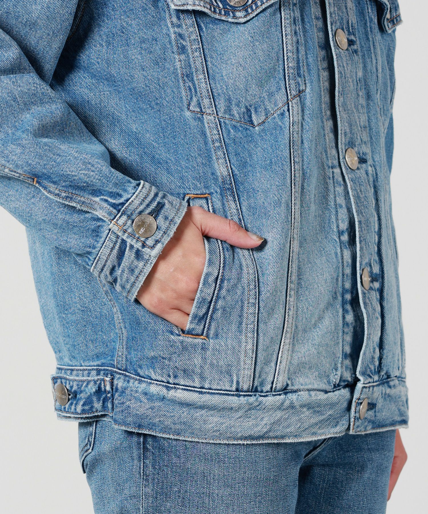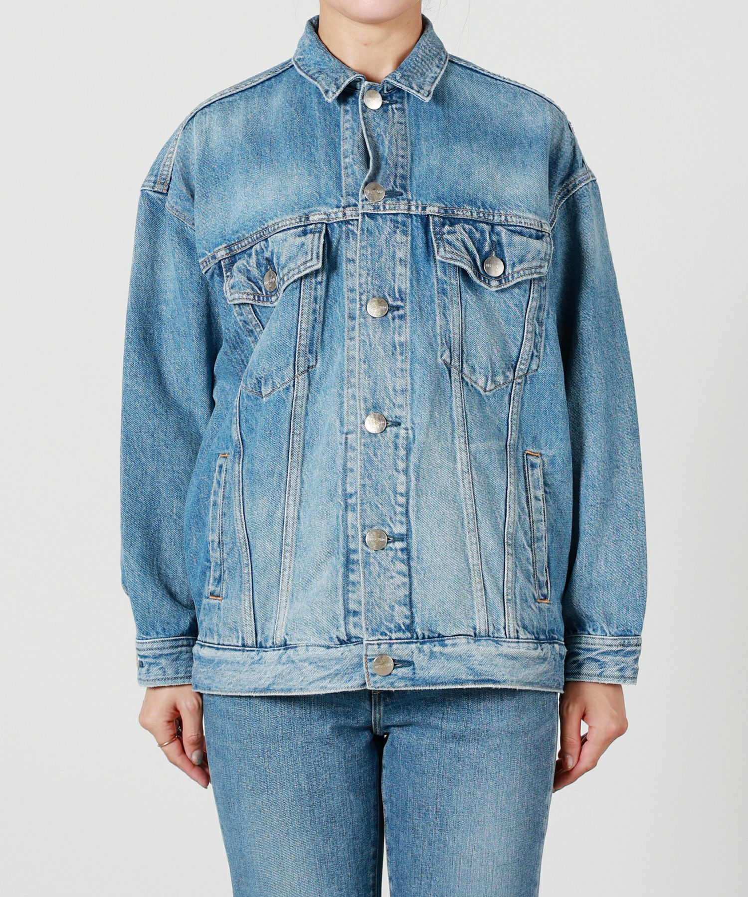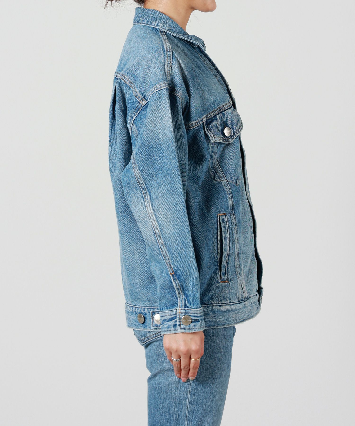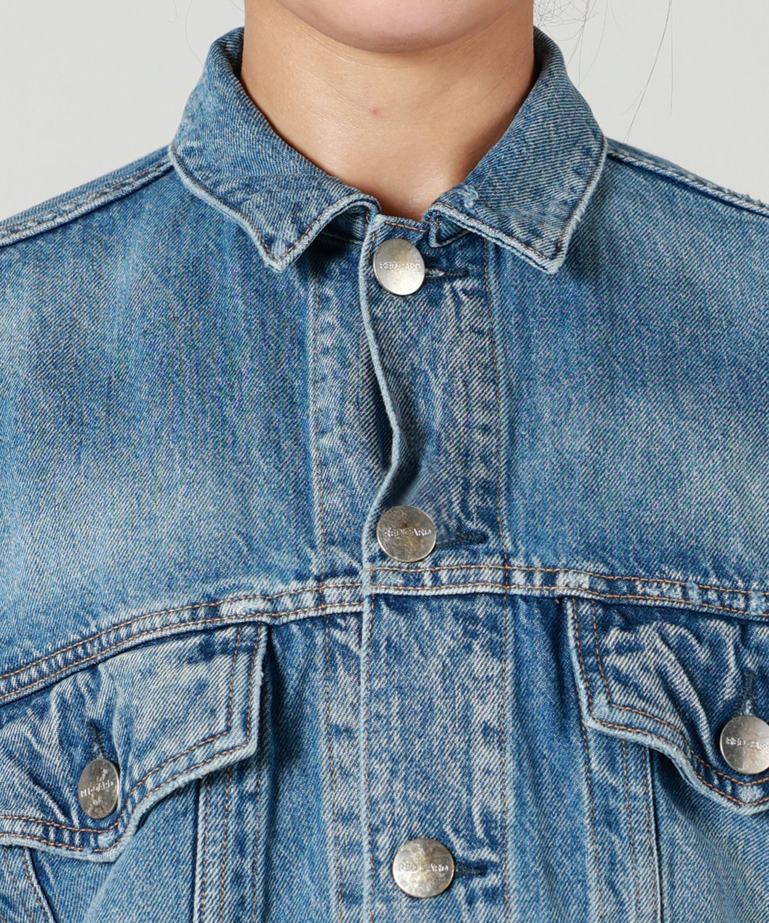 【デザイン】 RED CARD TOKYO(レッドカードトーキョー)のデニムジャケット。メンズライクなゆったりとしたボクシーなシルエットとなっております。ゆったりとした袖幅と腰回りが隠れる着丈が特徴。ボトムを選ばずバランス良くコーディネート可能です。