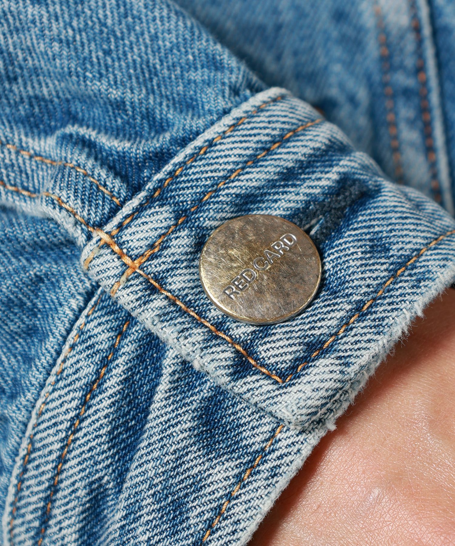 【素材】 経糸、緯糸双方にリターンコットンを採用しています。(リターンコットン:紡績工程で発生する未利用綿を回収して再利用した糸)独特のアタリとシボ感が特徴のデニム生地となっており、ビンテージさながらの風合いとなっています。綿100%のデニムながら比較的軽量で柔らかい生地感です。