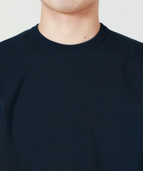 【デザイン】 Revenir(リブニール)の半袖ニット。スタンダードなクルーネックのTシャツは細すぎず緩すぎない絶妙なシルエット。一枚できてもバランス良く着用できることはもちろん、インナーとしてもかさばらず重宝します。