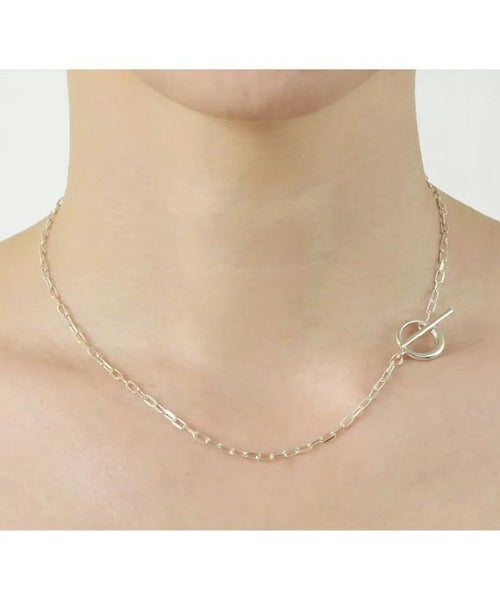【デザイン】 シンプルですがカットの効いた存在感のある細めのシルバーチェーンネックレス。マンテル(留め具)を後ろにして、シンプルなチェーンとして、トップにしてちょっとしたアクセントにしていただくのもおすすめ。シンプルなデザインで、どんな着こなしにもマッチするデザインです。