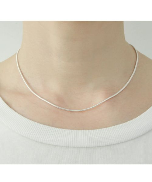 【デザイン】Rieuk(リューク)のネックレス。シンプルさと上品な存在感を兼ね備えたエレガントで繊細なスネークチェーンネックレスです。単体で着用しても、他のジュエリーと合わせても、スタイルのレイヤリングを楽しむことができるリンプルなデザインが嬉しい。主張しすぎずにさりげない魅力を放ち、毎日の着用に最適なスキンジュエリー。耐久性のあるシルバー925の素材を活かした、心地よく身体に馴染むシルバーカラーも魅力です。