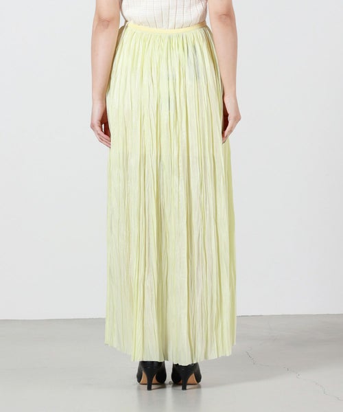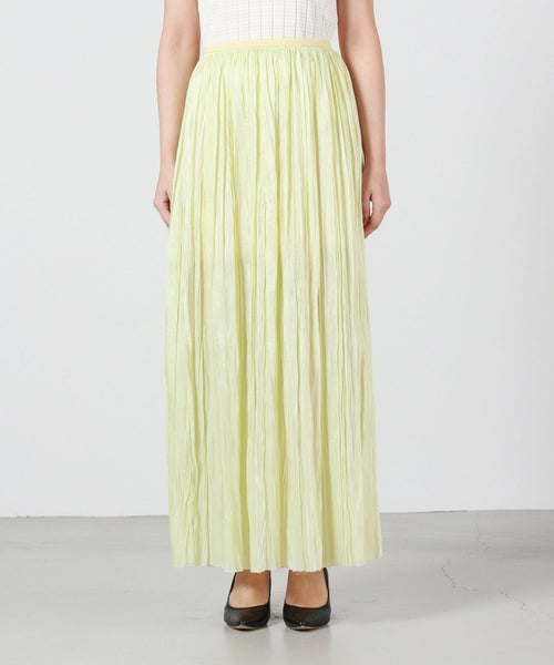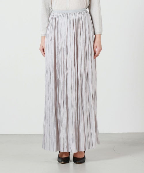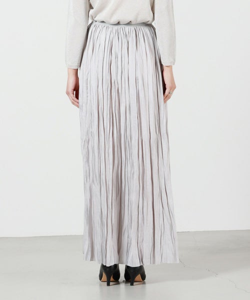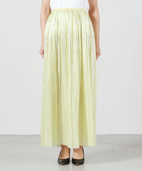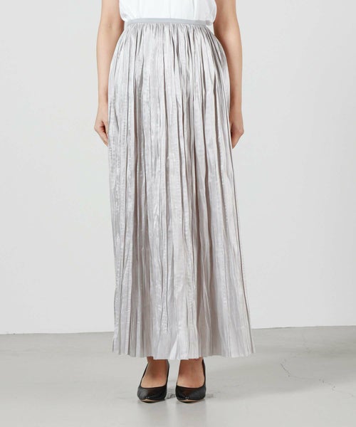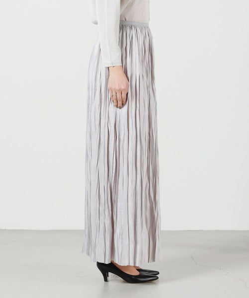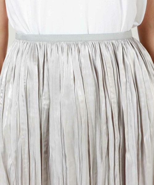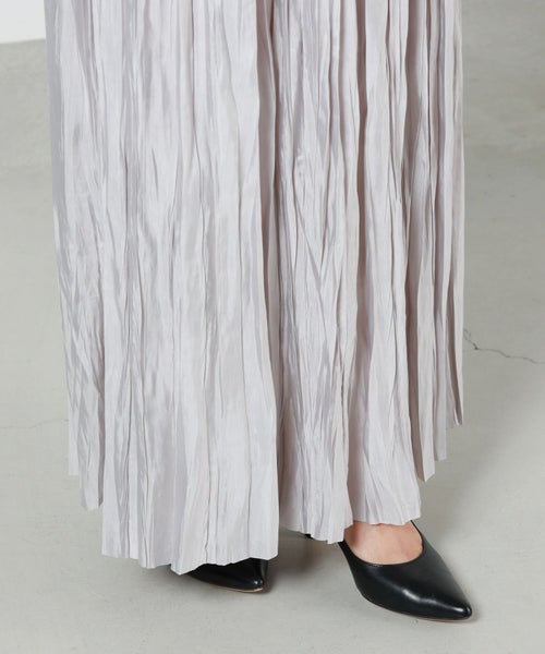 【素材】 しっかりとした素材感ながら軽やかな印象。動きに合わせて美しく揺れるプリーツ加工が施され、視覚的にメリハリを与えます。