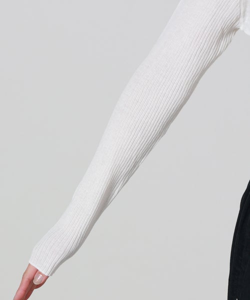 【素材】 さらりとしたドライタッチとほのかな光沢感が魅力。触れた瞬間に感じるシャリ感のある質感が、汗ばむ季節でも快適な着心地を叶えます。なめらかさと上品な艶が加わることで、カジュアルになりすぎず洗練された印象に。リブ編みによる適度なフィット感と伸縮性で動きやすく、体のラインに自然に沿う美しいシルエットを演出します。薄手で軽やかなため、持ち運びにも便利で冷房対策にもおすすめです。