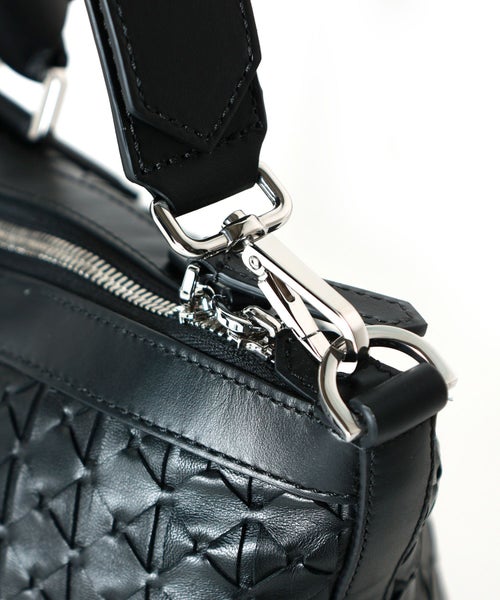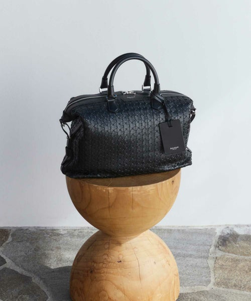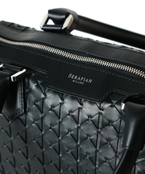 【デザイン】 SERAPIAN(セラピアン)のビジネスバッグ。現代感と洗練性がインパクトの高さを演出する、ブラックのMOSAICOナッパレザーを使用したブリーフケース。収納力に優れた、ブリーフケースとしてもPCバッグとしてもご使用いただけるデザインです。1947年から継承されている当メゾンオリジナルの象徴的なMOSAICO編みを用い、一品一品丁寧に手作りしています。同色またはコントラストカラーの極めて柔らかなナッパレザーリボンを、熟練職人が丁寧に手作業で編み込み、当メゾンの高い技術とMade in Italyの伝統を象徴する、目を惹くモチーフを生み出しています。