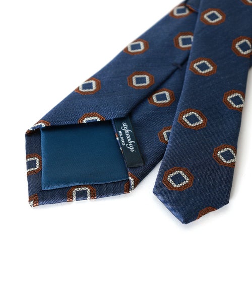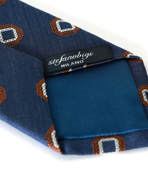 【デザイン】Stefano bigi(ステファノビジ)のネクタイ。扱いやすい幾何学模様。シルク100%のツヤのある素材を使用しており、スタイリングにさりげないアクセントを添えてくれます。