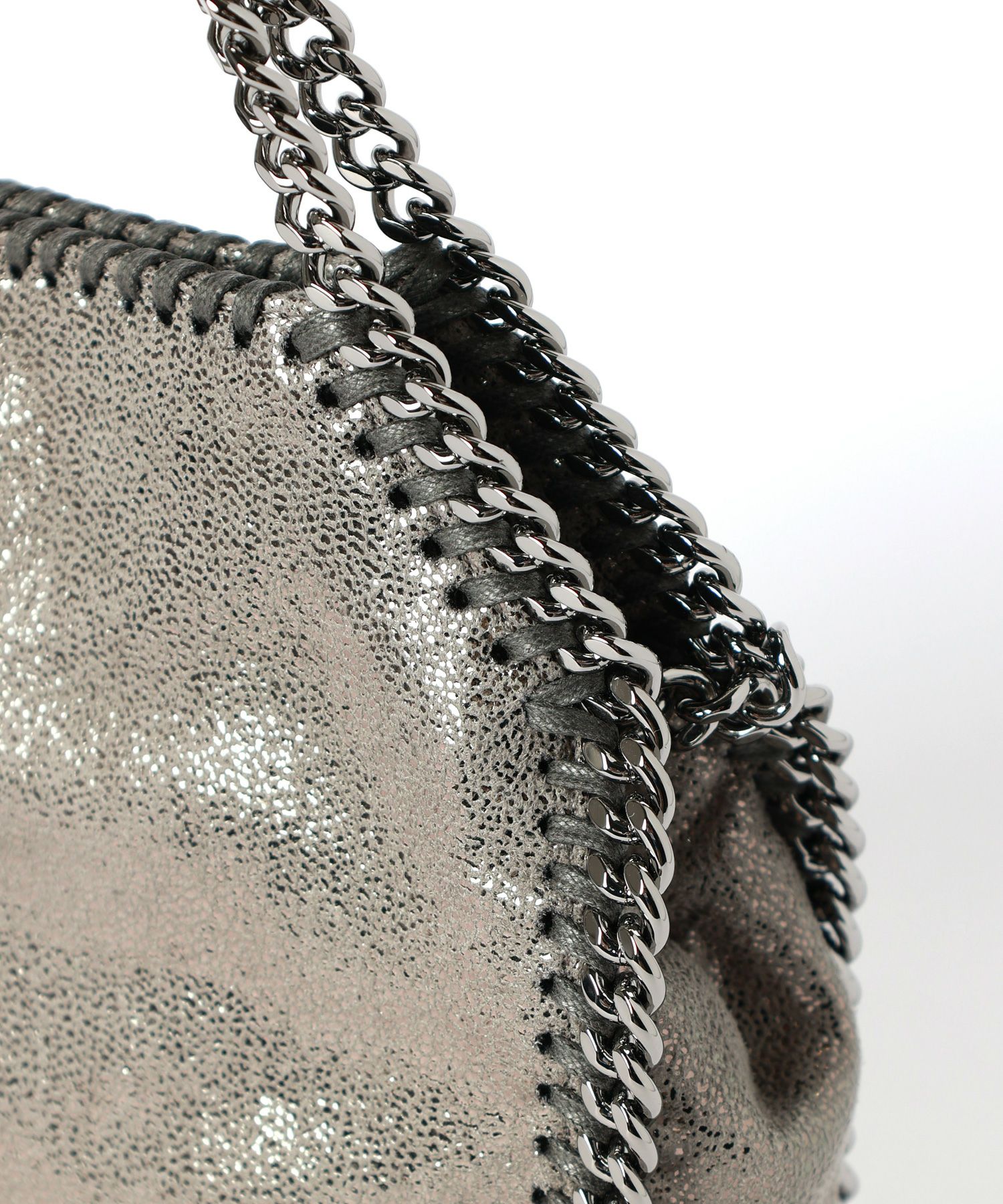 【デザイン】STELLA McCARTNEY(ステラ マッカートニー)が誇るヴィーガンアイテムの象徴であるファラベラバッグ。リサイクル素材を用いて作られたつややかなシャギーディアファブリックを使用した、クルエルティフリーの一品です。手作業で編み込まれたヘビーウェイトのダイヤモンドカットチェーンのアウトラインとハンドルが特徴。デイリーな必需品の収納に十分なスペースを備えています。バッグをショルダーストラップの取り付け部分で折り曲げて持ったり、肩に掛けたり、クラッチとして手に持ったりできます。