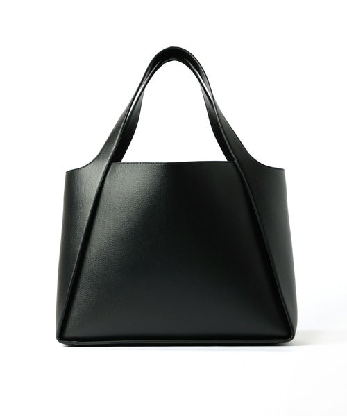 【デザイン】 STELLA McCARTNEY(ステラ マッカートニー)のバッグ。手持ちでも肩掛けでも使用できる多用途デザインと、気負わないタイムレスで構築的なシルエットが魅力。フロントにはスタッズ付きの円型ステラ マッカートニーロゴを配し、シンプルながらも存在感のある仕上がりです。また、コントラストカラーのシングルステッチがアクセントとなり、洗練された印象を与えます。ルテニウムトーンの刻印ロゴ入りメダリオンチャームがファッション性を高めるアクセントとして配されています。大容量のメインコンパートメントはノートPCやタブレットが収納できるサイズ感で、取り外し可能なポーチにはスマートフォンや鍵などの必需品を収納することで、整理整頓しやすい機能性も兼ね備えています。抜群の収納力で、日常のあらゆるシーンで活躍してくれるアイテムです。