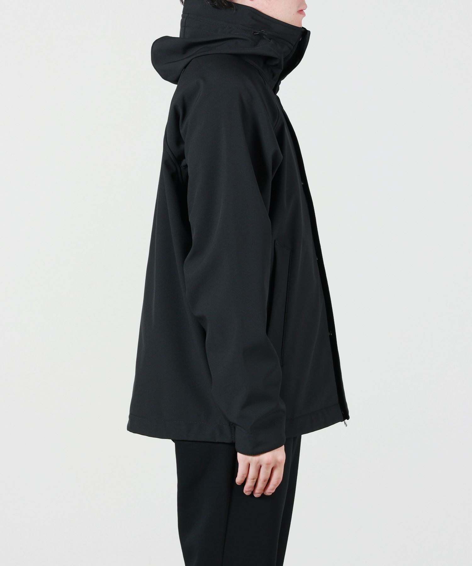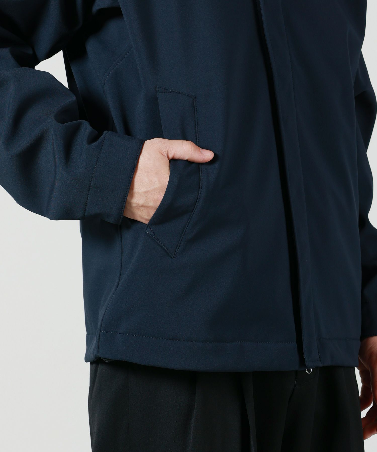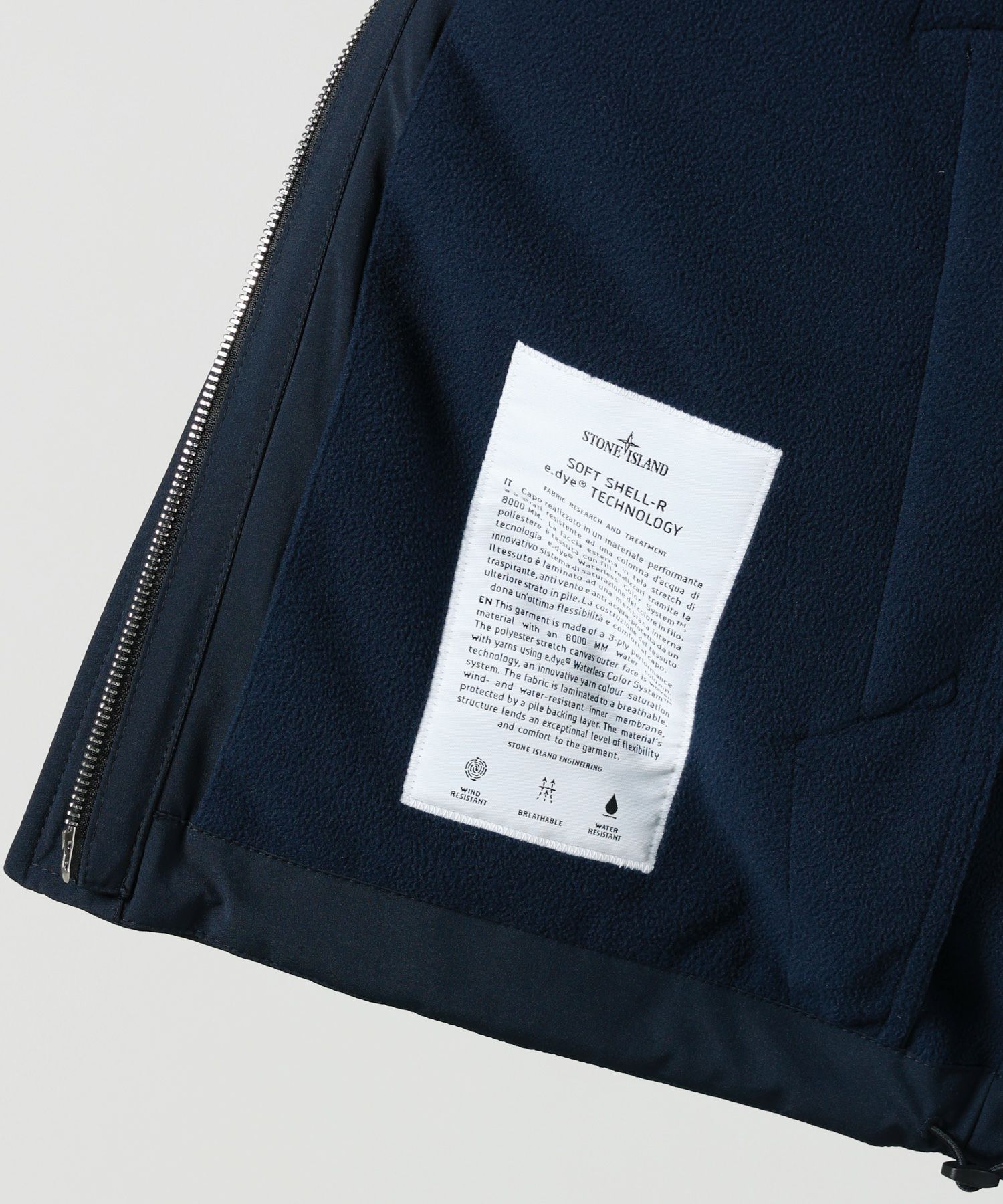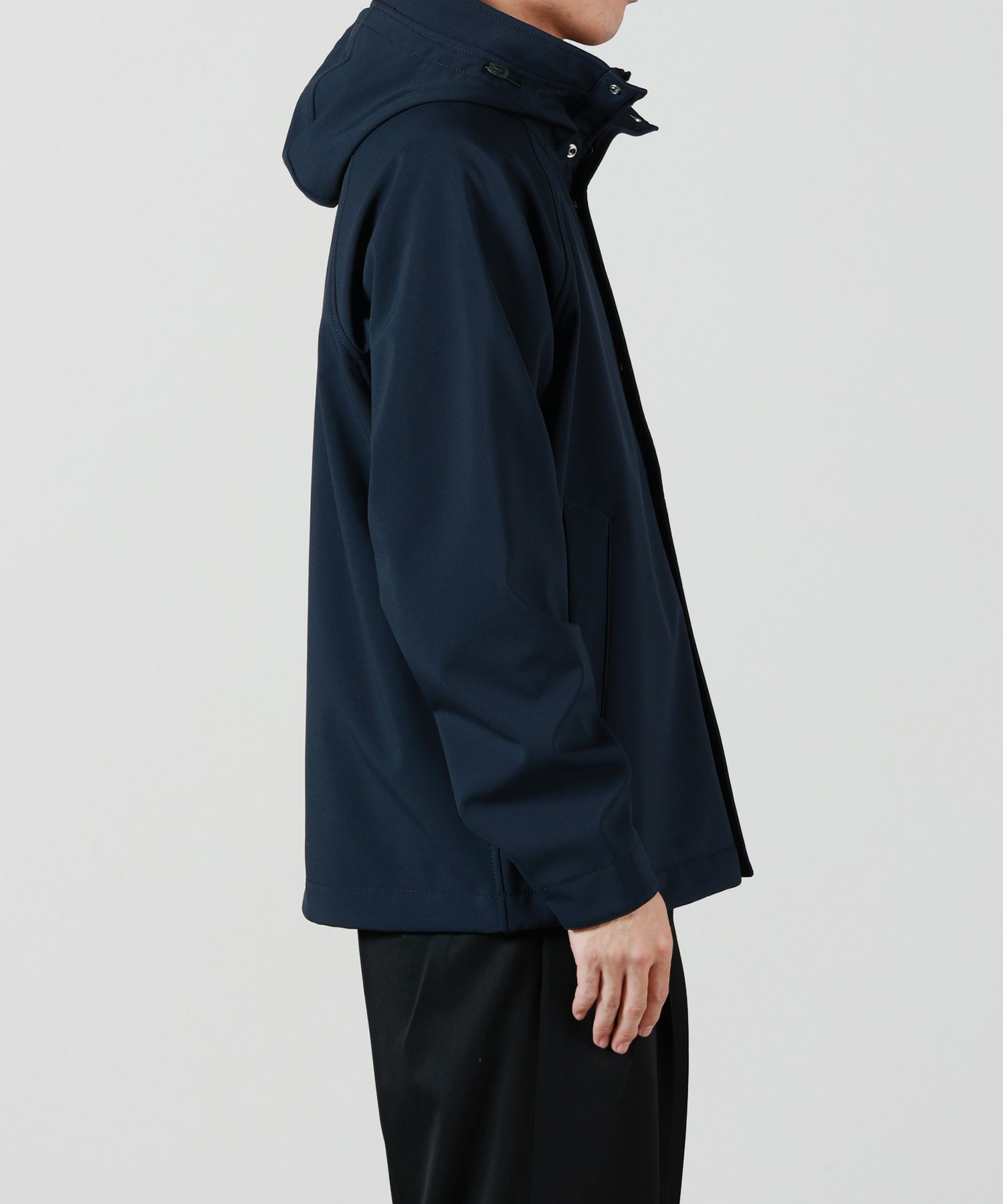 【素材】三層構造の高機能素材を使用。表地には伸縮性のあるポリエステルキャンバス地を採用し、e.dye Waterless Color Systemによって環境負荷を抑えつつ、美しい発色を実現しています。中間層には、防風・防水・透湿性を兼ね備えたポリウレタンの薄膜をラミネート加工。裏地には柔らかく肌触りのよいポリエステル素材を配し、快適な着心地をサポートします。見た目にはすっきりとしたマットな質感とハリがあり、撥水性や耐風性にも優れているため、急な天候変化にも対応。機能性とデザイン性を高次元で両立した、STONE ISLANDならではのテックアウターです。