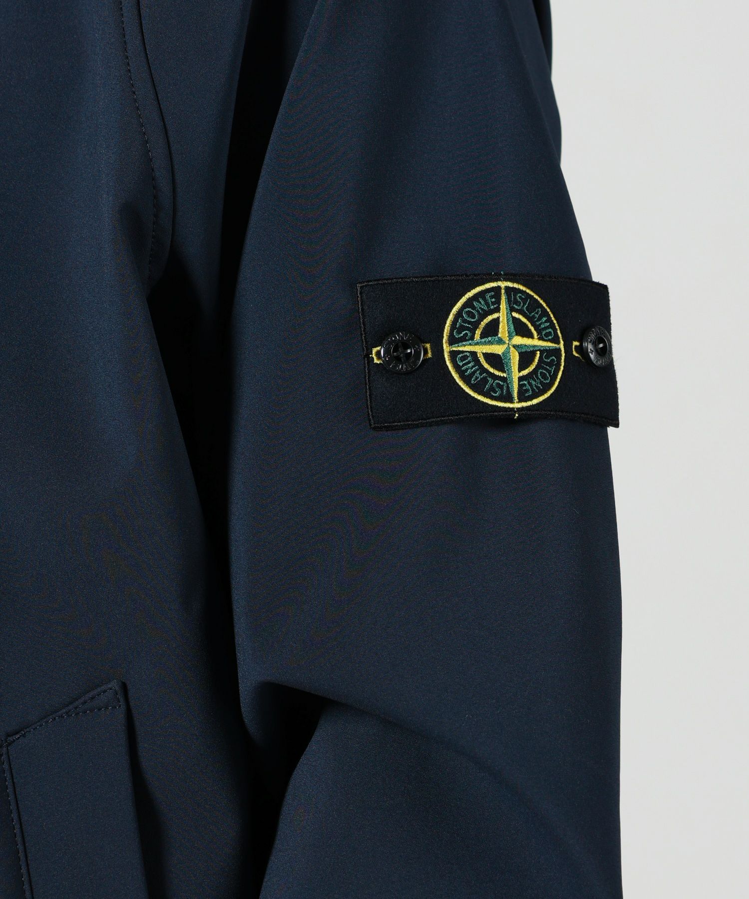 【デザイン】STONE ISLAND(ストーンアイランド)のジャケット。 ミリタリールーツをモダンに昇華させた、ブランドらしい機能的かつ洗練された佇まいが魅力の一着。スタンドカラーの内側にはフードを隠し持ち、気候に応じて表情を変えることができます。動きやすさを考慮したラグランスリーブ、胸元の立体的なジップポケット、スナップボタン付きのスラントポケットなど、実用性を備えたディテールが随所に。袖にはお馴染みのコンパスバッジがあしらわれ、STONE ISLANDらしい存在感を演出します。シルエットはレギュラーフィットで、ボリューム感のあるインナーとのレイヤードも可能。ネイビーブルーのタイムレスな色味は、幅広いスタイルに馴染みやすく、タウンユースにもアウトドアにも映える万能アイテムです。