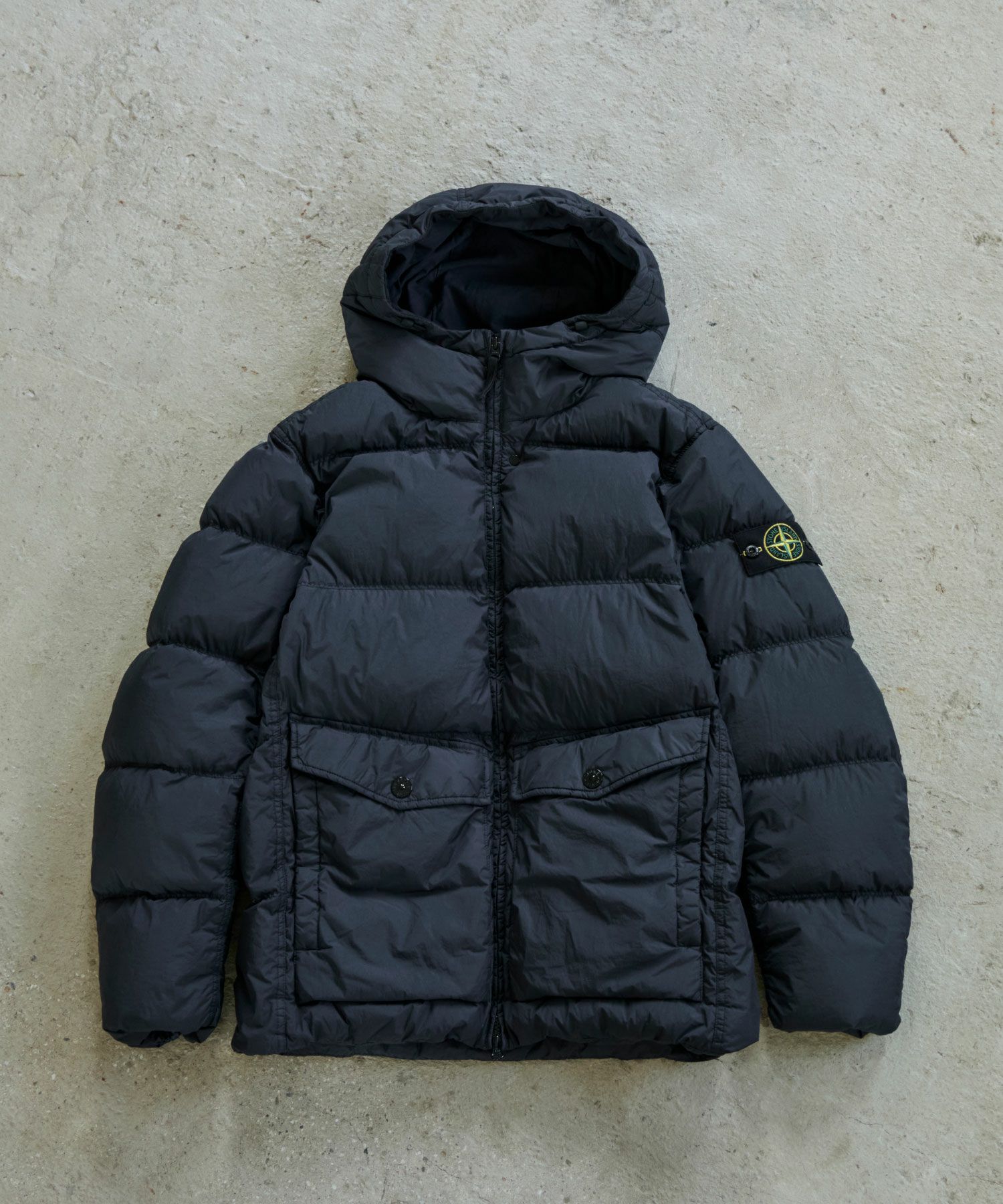 おすすめポイント:ストーンアイランドの魅力である上質で他では中々見られない素材感のダウンジャケットです!最高品質のダウンを使用しているので、真冬でも問題ない防寒性と軽い着用感かあり、重いダウンが嫌という方にもオススメできる1着です!