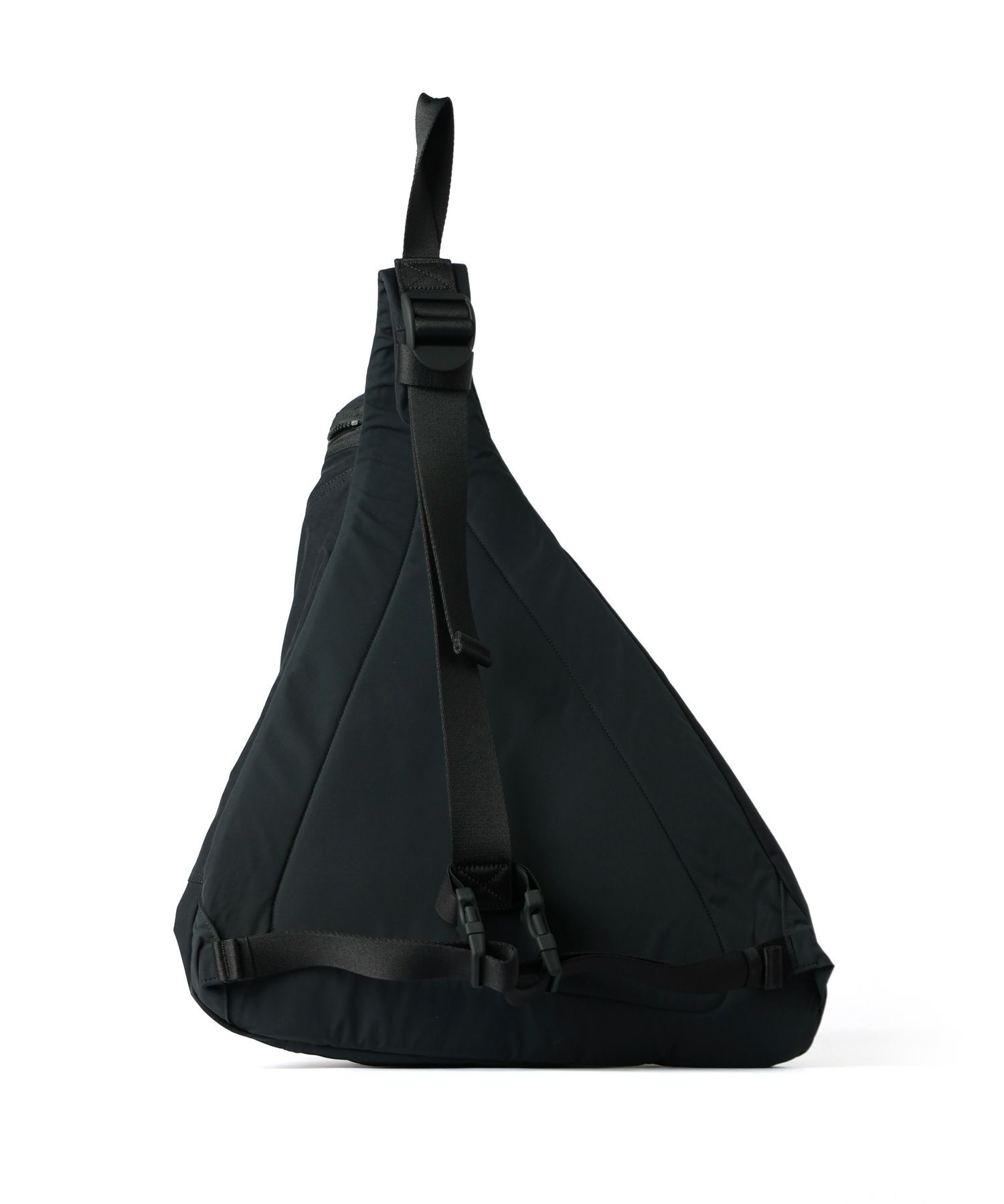 【デザイン】STONE ISLAND(ストーンアイランド)のバッグ。幾何学デザインが目を惹くショルダーバックパックには、ブランドの象徴であるコンパスモチーフがあしらわれています。アシンメトリーな三角形のフォルムと、統一感のあるミニマルなフォルムは、シンプルさと自信に満ちたスタイルを印象づけます。