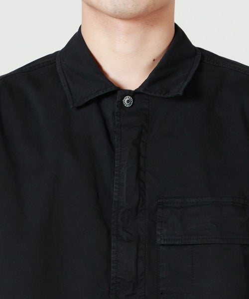 【デザイン】 STONE ISLAND(ストーンアイランド)のショートスリーブシャツ。コンフォートフィットでゆったりとしたシルエットが特徴的で、両胸にはデュアルコンパートメントを備えたマチ付きパッチポケットを配し、フラップとコンシールボタンで開閉できる機能的なデザインになっています。前立てはダブルスライダーファスナーのコンシールプラケットを採用し、上下にスナップボタンが付いているため、シャツながらブルゾンのような着こなしも楽しめます。背面にはヨークを施し、左袖にはブランドの象徴であるコンパスロゴワッペンが配され、アクセントを添えています。