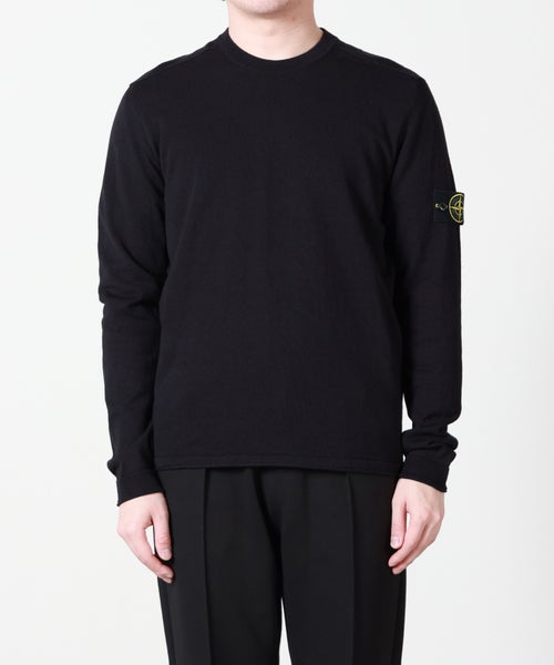 【デザイン】 STONE ISLAND(ストーンアイランド)のクルーネックニット。ミニマルで洗練されたシルエットが魅力のスタンダードな一枚。レギュラーフィットによるバランスの取れたフォルムは、1枚でもインナー使いでも活躍する万能な仕上がりです。リブ編みのネックラインが程よい立体感を演出し、袖口と裾はロールエッジ仕様でナチュラルな抜け感をプラス。計算されたディテールが、シンプルながらも奥行きのある表情を生み出します。左袖にはブランドアイコンのコンパスワッペンがさりげなく配され、控えめなアクセントになっています。