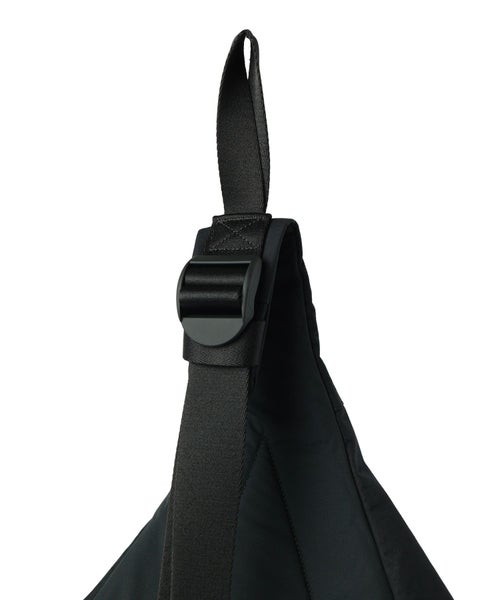 【デザイン】STONE ISLAND(ストーンアイランド)のバッグ。幾何学デザインが目を惹くショルダーバックパックには、ブランドの象徴であるコンパスモチーフがあしらわれています。アシンメトリーな三角形のフォルムと、統一感のあるミニマルなフォルムは、シンプルさと自信に満ちたスタイルを印象づけます。