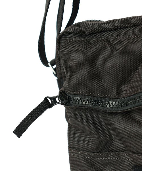 【素材】表地には耐久性に優れたCORDURA?ナイロン1500を採用し、アウトドアスペックに応える強度と軽さを両立。マットな質感が無骨さと都会的な印象を併せ持ち、日々のスタイリングに自然と馴染みます。裏地はリップストップナイロンにコントラストカラーを効かせ、開けた時にも抜かりないデザイン。コーティング加工が施されており、多少の雨や汚れにも安心な仕様です。しっかりと自立するハリのある質感で、型崩れしにくいのもポイント。