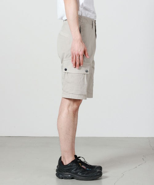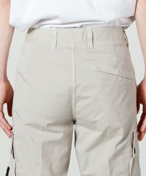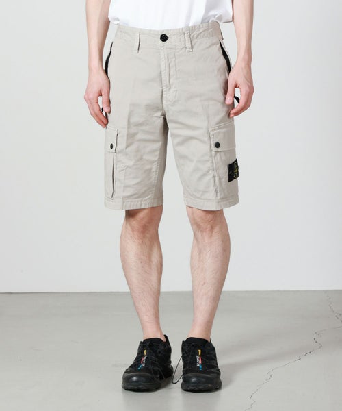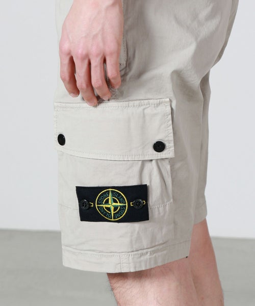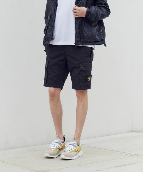 【デザイン】 STONE ISLAND(ストーンアイランド)のカーゴショーツ。スリムなシルエットとスタンダードなレングス仕様で、大人のための一本となっています。左脚にはおなじみのコンパスロゴパッチが配された愛顧忍苦なデザイン。