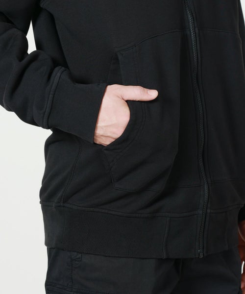 【素材】表地には100%コットンフリースを使用。オーガニックコットンのしなやかで柔らかな肌触りと、適度な厚みがありながらも軽やかな着心地が快適をもたらします。また、ガーメントダイ加工による独特の風合いと深みのある色合いが魅力です。