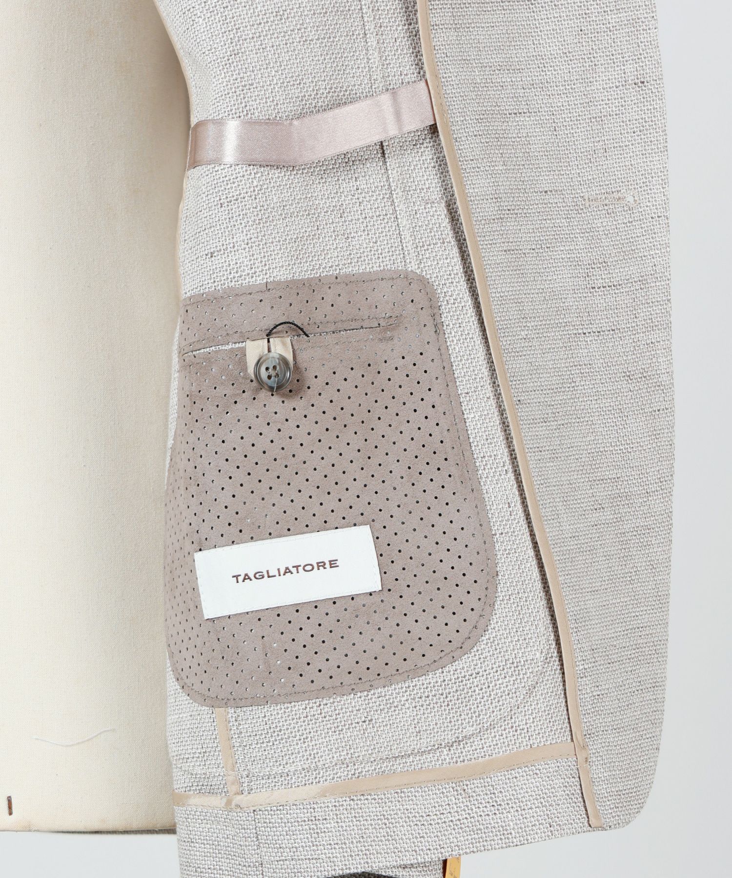 TAGLIATORE(タリアトーレ)は1960年代に創業したLERARIO(レラリオ)社が母体となり、二代目のPino Lerario(ピーノ・レラリオ)が立ち上げたブランド。TAGLIATOREはイタリア語で「裁断士」を意味し、両脇からウエストを絞った立体的なフォルムは卓越したカッティング技術に支えられています。さらに厳選した素材を使うことで、イタリアらしい、ファッションを楽しむ気質が注がれています。“パーソナライズできる”ということもタリアトーレの強みのひとつ、各バイヤーが好みの仕様にディテールを選べるシステムは、ボタンの種類であったりステッチや肘パッチの有無などが自由に選択できるのです。そこには人生を謳歌するのと同じようにファッションを楽しむイタリア気質が注がれています。