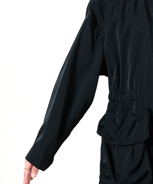 【デザイン】TATRAS(タトラス) のブルゾン。上品な光沢のあるナイロンツイル素材で仕上げた、モッズコート風のライトアウター。適度なドレープと自然なシワ感を持たせたことによる、ニュアンスのある表情が魅力的です。ウエストと裾にはドローコードがセットされ、スタイリングに合わせて調整が可能。デイリーはもちろん、旅先などでも重宝擦るアイテム。スタンドカラーのミニマルな前たてが、首まわりをすっきりと見せてくれます。