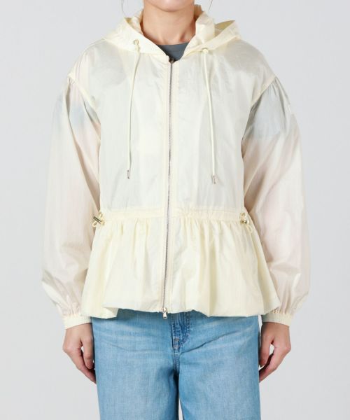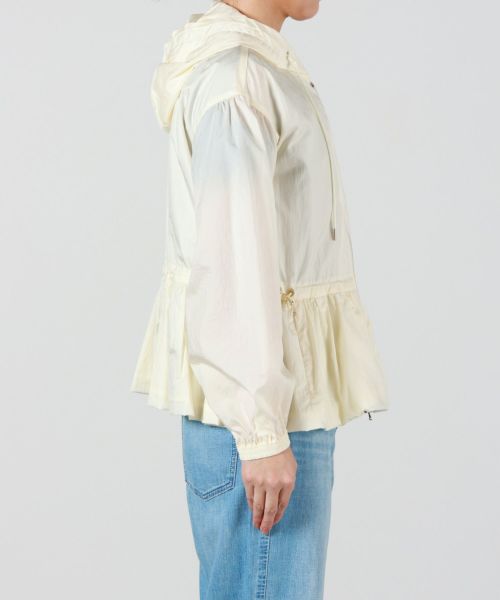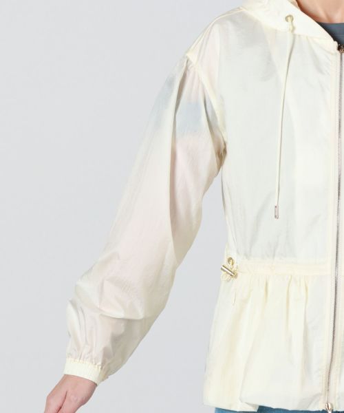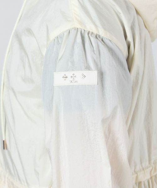 【デザイン】TATRAS(タトラス)のコート。 人気のモデルのフード付きミドル丈ブルゾンを長袖にアップデート。弾力性とハリ感のある超軽量のナイロンワッシャー素材を使用し、フードをボディと一体化。フードの付け根部分は首元にくるよう設計し、袖部分は少し肩を落としたデザインにすることで、ギャザーによる肩回りのボリューム感を抑えています。ウエスト脇に配したドローコードでギャザーの調整が可能です。コンパクトな丈感ながらも、生地の洗い加工によるシワ感を生かして女性らしいシルエットに仕上げました。撥水効果があり、羽織としても最適。デイリー使いしやすい一着です。
