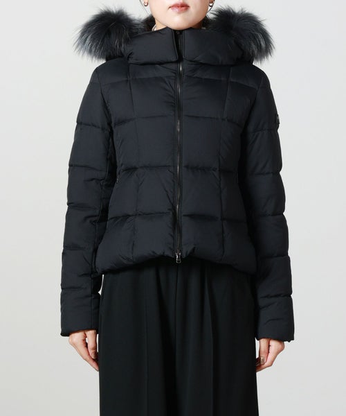 【デザイン】TATRAS(タトラス)のダウン。体のラインに沿うようデザインされた細かいブロックステッチのショート丈ダウンジャケットです。 ややウエストを絞り、メリハリのある美しいシルエットに仕上げられています。 フード、ファーはそれぞれ取り外しが可能なため、気分に合わせて印象を変えることも可能です。 縫い目等が目立ちにくいコンシールファスナーを使っているのもポイント。 ポケットの内袋には起毛素材を使っているため、ハンドウォーマーとしての機能も叶えます。 ボリュームを抑えた、すっきりと着用できる一着です。