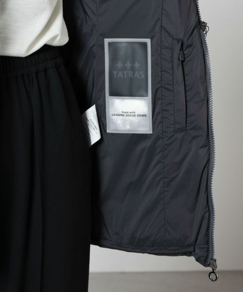 ハイクオリティな素材を使用し、機能的で洗練されたアウターを提案するTATRAS(タトラス)。ポーランド、ミラノ、日本のコーポレイトブランドというユニークなバックグラウンドを生かし、世界レベルで展開される期待のブランドです。トレンドを取り入れつつ、使い勝手のよさを追求したデイリーユースなアイテムが定評で、特に、軽量で、高いフィルパワーを誇るホワイトグースダウンを使用したダウンウエアは、幅広いファッション嗜好の人々に愛用されています。※タトラス正規品であることを証明するギャランティカードが付属しており、メーカー保証が付いています。