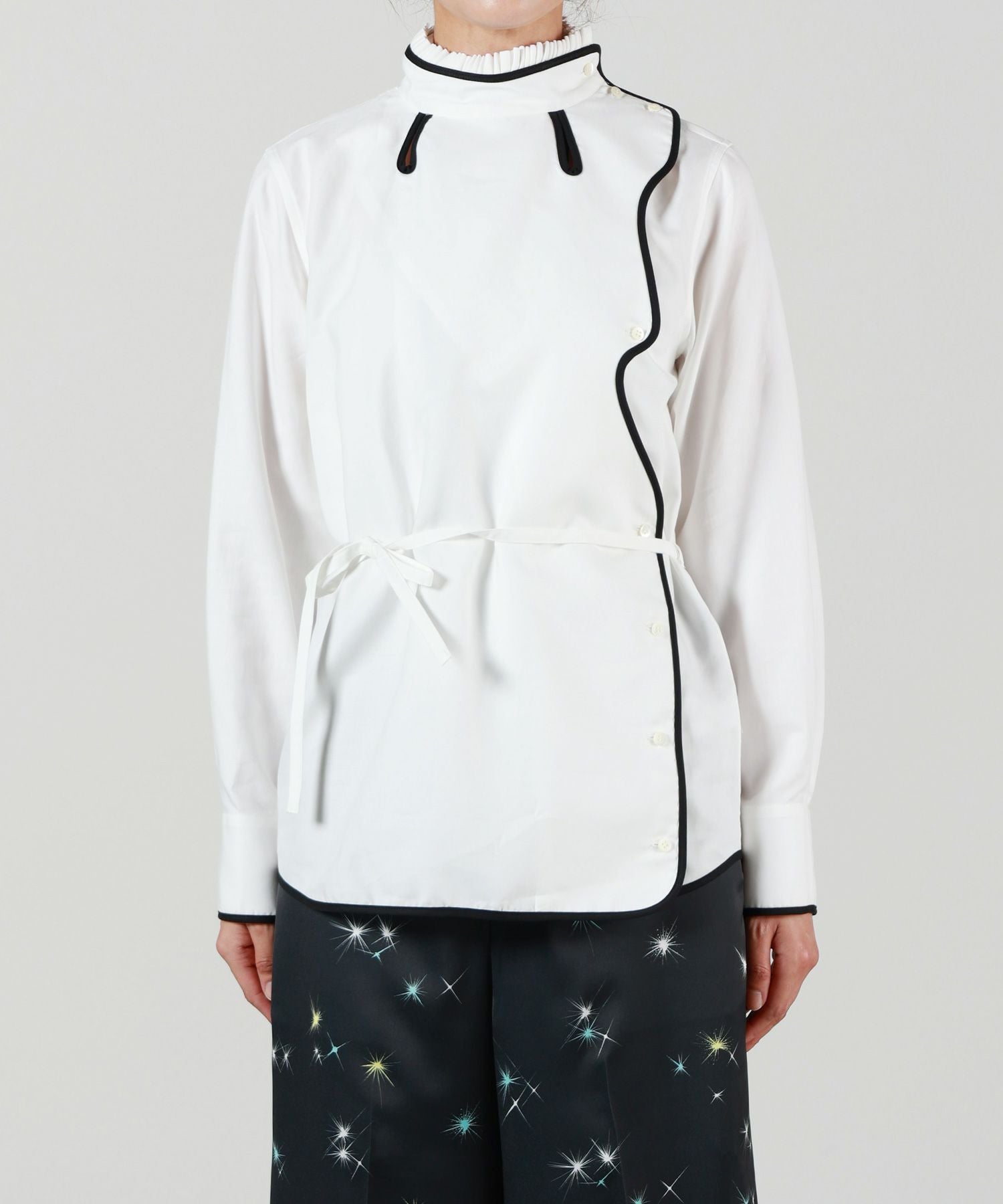 DRIES VAN NOTENやISSEY MIYAKEで経験を積んだ中島輝道(てるまさ)による新ブランド。ドリスのもとで学んだ西洋のドレスアップの感覚と、イッセイ ミヤケで得た日本の素材開発の知見を両立させたクリエイションに挑んでいます。コレクションに使う素材の9割はオリジナルで、「ブランドを立ち上げる上で、環境への配慮は欠かせなかった」という思いから、再生繊維を用いたキュプラや、撚糸から手掛けた再生ポリエステルなど、環境に配慮した素材も積極的に使用しています。2022春夏シーズンよりデビュー。