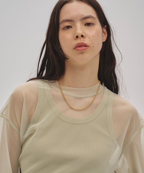 【素材】綿100%を使用。リブ素材を使用し、素肌に直接着たくなるようなやさしい肌触りが魅力です。コットン特有のナチュラルでドライなタッチは、汗ばむ季節でも快適な着心地をキープしてくれます。通気性にも優れており、長時間の着用でも蒸れにくくデイリーに取り入れやすいアイテムです。リブ編みならではの程よい伸縮性があり、身体にしなやかにフィットしながらも締め付け感の少ないストレスフリーな着用感を実現しています。