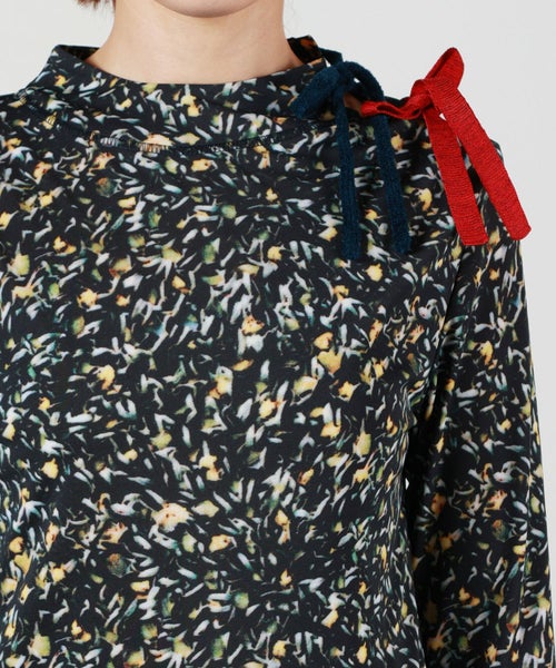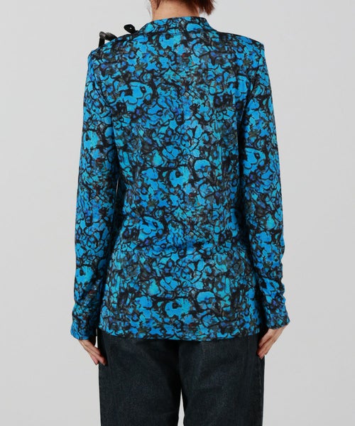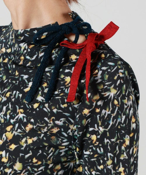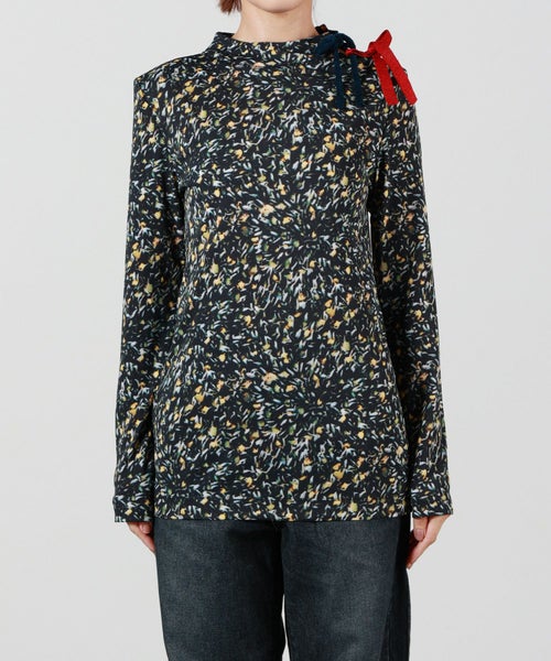 【デザイン】TOGA PULLA(トーガプルラ)のカットソー。スムースな質感と独創的なプリントが目を惹く長袖トップスは、1枚で主役になる存在感。天然石の断面を思わせるマーブル柄、シャープな線描き風の花柄と、柄ごとに異なるムードを楽しめる2パターンをご用意しています。左肩には異素材のリボンを2種あしらい、遊び心とフェミニンさをプラス。程よく身体に沿うシルエットで、インナー使いにも映えるデザインです。