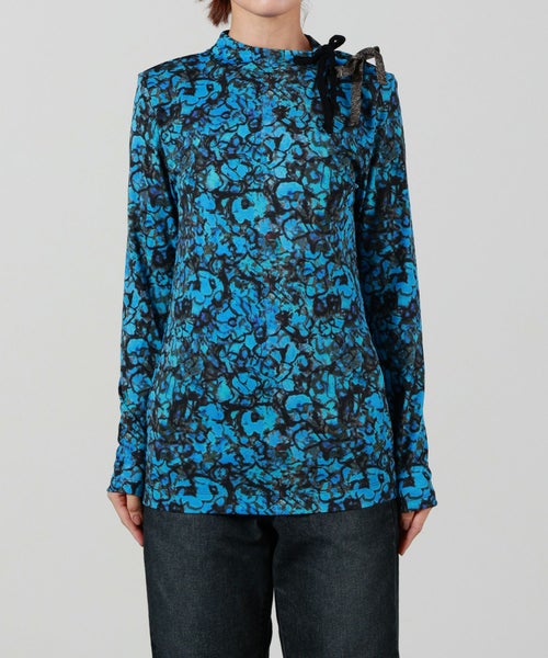 おすすめポイント:独創的なプリントが目を惹くカットソー。天然石の断面をイメージしたマーブル柄は一枚で主役級。左肩のリボンが甘めのアイテムです。