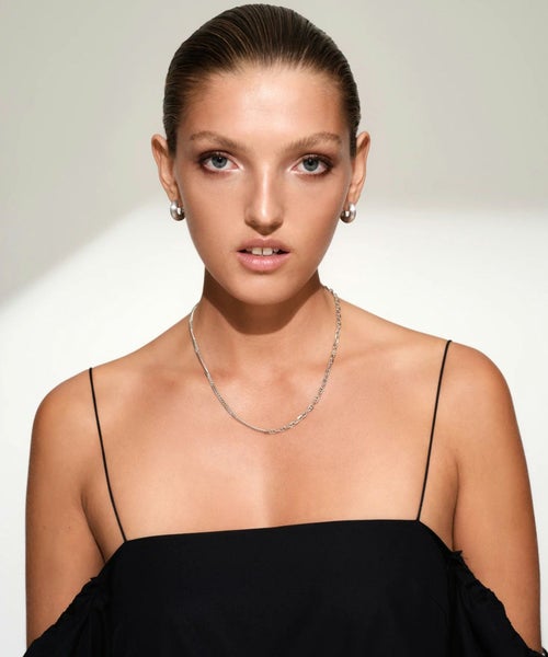 【素材】ポリッシュ仕上げのリサイクル・スターリングシルバー925を使用し、表面にホワイトロジウムプレーティングを施すことで、耐久性を高め、変色を防ぎます。触れた時に感じる滑らかな質感と、シンプルでありながら美しい輝きが長期間続きます。