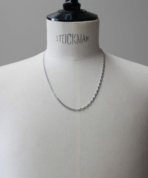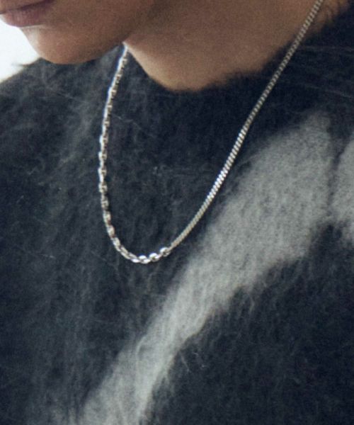 【デザイン】TOMWOOD(トムウッド)のネックレス。クラシックなチェーンに、2つの異なるデザインを組み合わせたカスタマイズ・ネックレス。シンプルでありながらも新しいテイストを加え、独自の魅力を引き出します。洗練されたデザインが、日常使いにも特別なシーンにもぴったりです。