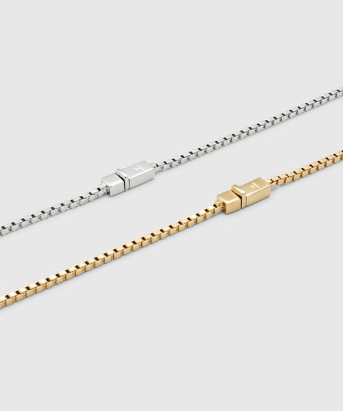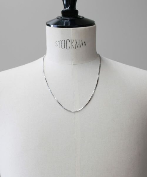 【デザイン】TOM WOOD(トムウッド)のネックレス。スクエアチェーンは、カスタムデザインのロックが特徴のボックス型のベネチアンチェーンを使用しています。シンプルで洗練されたチェーンネックレスは、単体使いはもちろん、他のネックレスとの重ねづけもおすすめです。