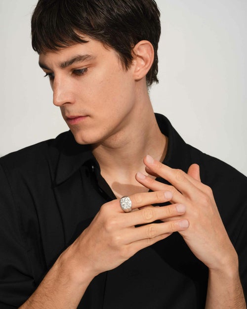 ■シグネットリングなど厚みのあるリングは、一般的にバンドリングなど細めのリングより大きいサイズを選ぶ必要がございます。