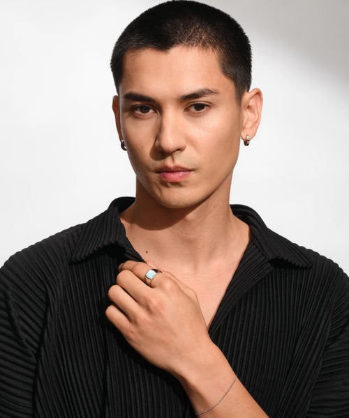 ■シグネットリングなど厚みのあるリングは、一般的にバンドリングなど細めのリングより大きいサイズを選ぶ必要がございます。