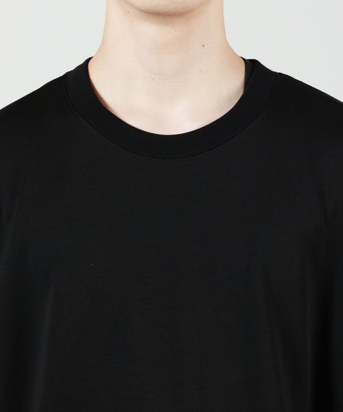 【素材】 スーピマコットンの細番手糸を使用したハイゲージのモクロディ素材。高密度で編み立てることで生まれるハリ感、細かい微起毛、さらに特殊柔軟仕上げによって肌当たりが非常に滑らかになっているのが特徴です。