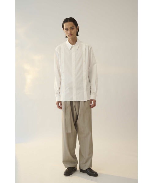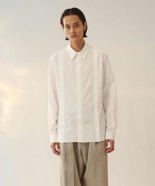 【デザイン】 UJOH(ウジョー)のシャツ。シンプルでありながら洗練されたデザインが光るシャツです。フロントには、ボタンのディテールがさりげなく際立つデザインが施され、クラシックな印象を与えつつ、現代的な要素を取り入れています。クリーンなカラーで、コーディネートに合わせやすく、どんなシーンにも対応可能。ストレートなラインで仕上げられたシルエットは、男性らしさを引き立てつつも、余計な装飾がないため、シンプルさとエレガントさを兼ね備えています。