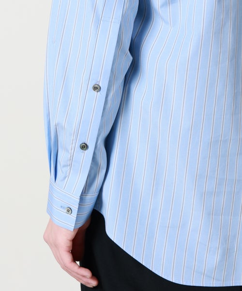 【素材】 高密度の100/2ポプリンストライプ。適度なハリ感と滑らかさ、クリアな表情が特徴の生地です。