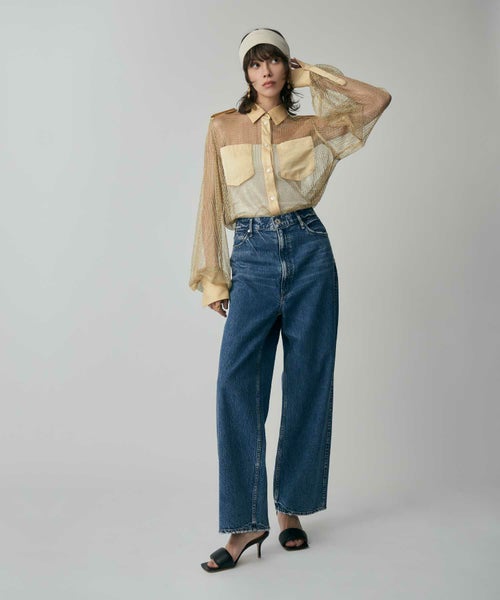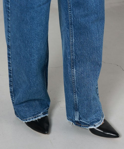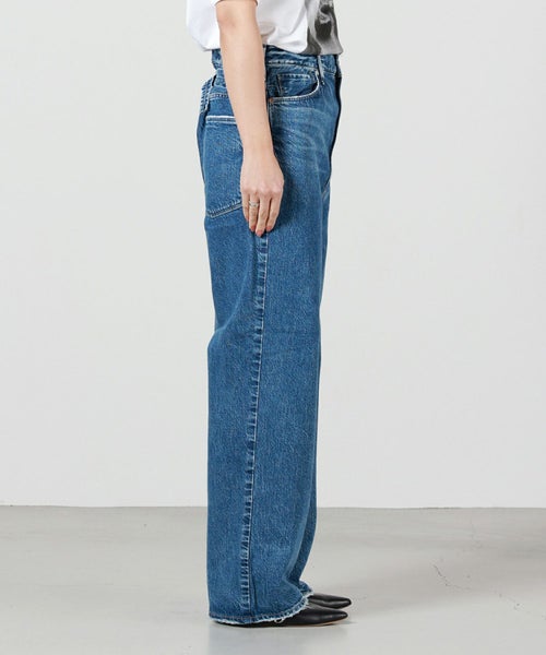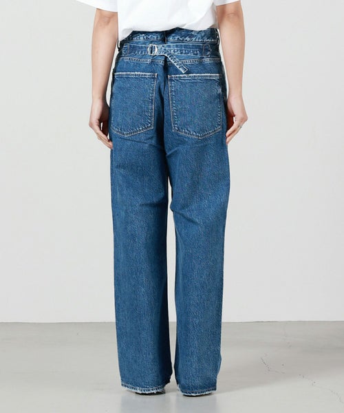 【デザイン】upper hights(アッパーハイツ)の新型ワイドストレートモデル「THE OLIVIA(ザ オリビア)」 デニムらしいオーセンティックな表情のノンストレッチデニム地採用。茶綿を使用していないのでくすみのないきれいなインディゴブルーが特徴。ウエストをゆるっと落として腰履きでも、後ろの尾錠をぐっと絞って履いても可愛い1本です。